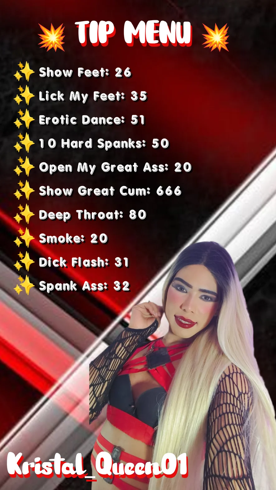 Ahegao, Spanking, Erotic Dance, Striptease, Smoking, Deepthroat, Doggy Style, Kissing, Dirty Talk, Flexing, Role Play, Blowjob, Twerk, Rimming, Hardcore, Gagging, Masturbation